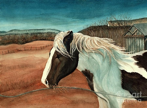 My greatest influence of Watercolor is Andrew Wyeth. My heart aches from his portrayal of the rural Pennsylvania countryside. The bare bones of the land – the austerity of its stark Winter existence. Although I am completely drawn to his stoic nature – you will quickly observe that I paint nothing like him. I may desire to – but my paint brush has a habit of picking up orange or purples and throwing it in a scene. My style is somewhat whimsical and Illustrative . My trees can be spooky at times but my scenes are typically uplifting.  Blame it on the Fairies.