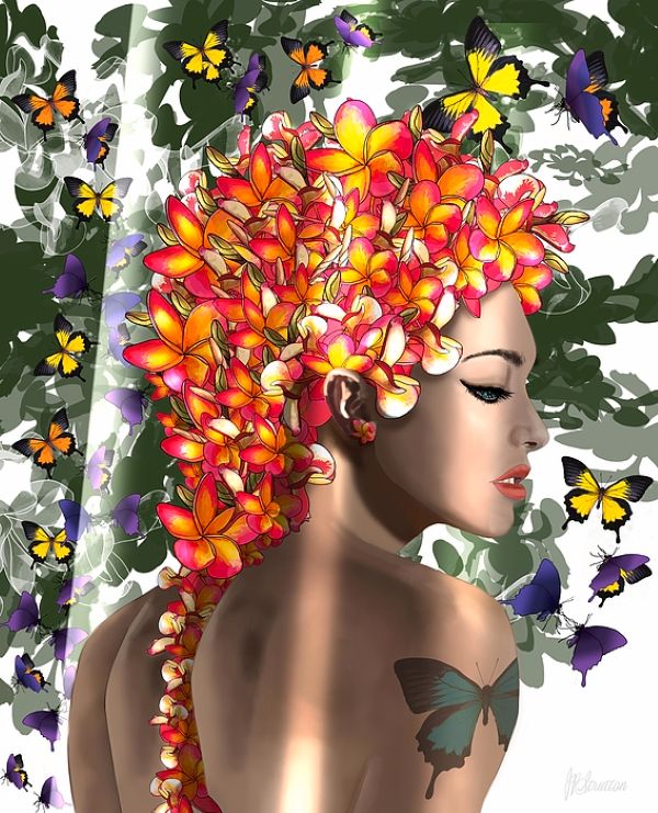 In her sun-drenched studio overlooking lush gardens and flitting sunbirds, Joan creates in a space that’s more like a living memory board than a traditional workspace. Here, digital canvases become portals, each piece whispering its own layered narrative of femininity, landscape, and introspection.